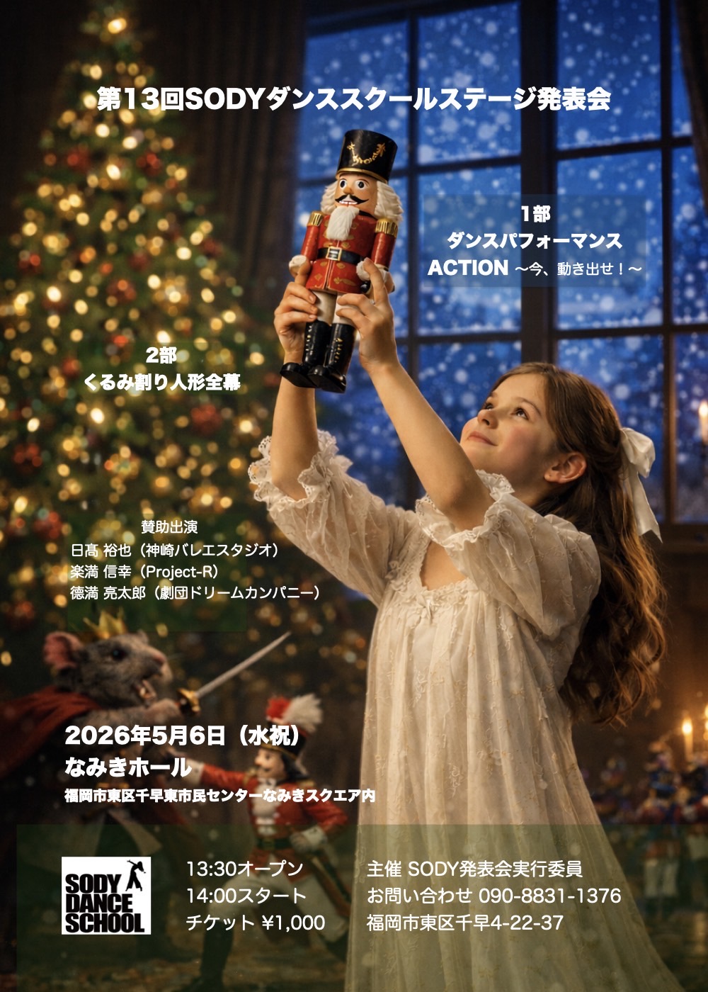 SODYダンススクールステージ発表会「くるみ割り人形全幕」に劇団員の德満亮太郎が賛助出演いたします。